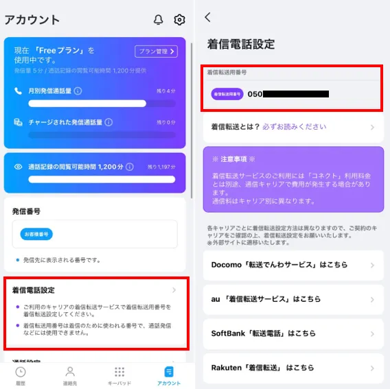 着信転送を利用する場合には、ご利用中の通信キャリアに「着信転送サービス」を設定することができます。